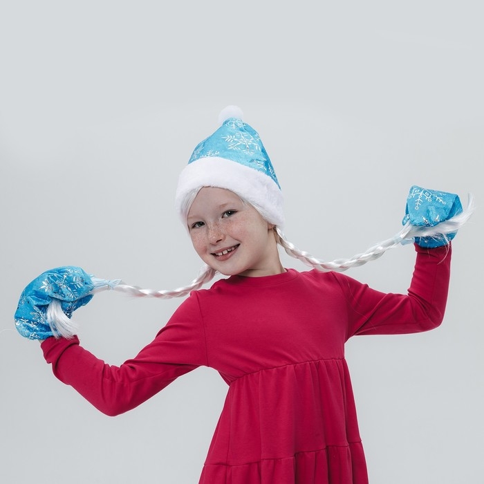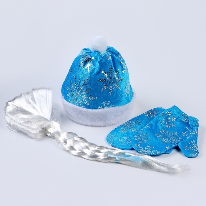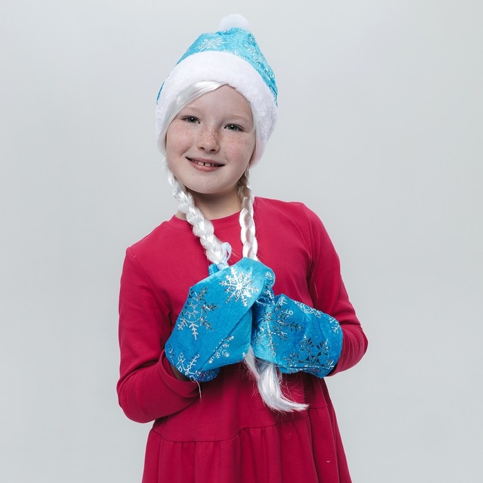 Карнавальный набор «Волшебная снегурочка»: шапка, варежки, парик с косичками, р. 56–58 см