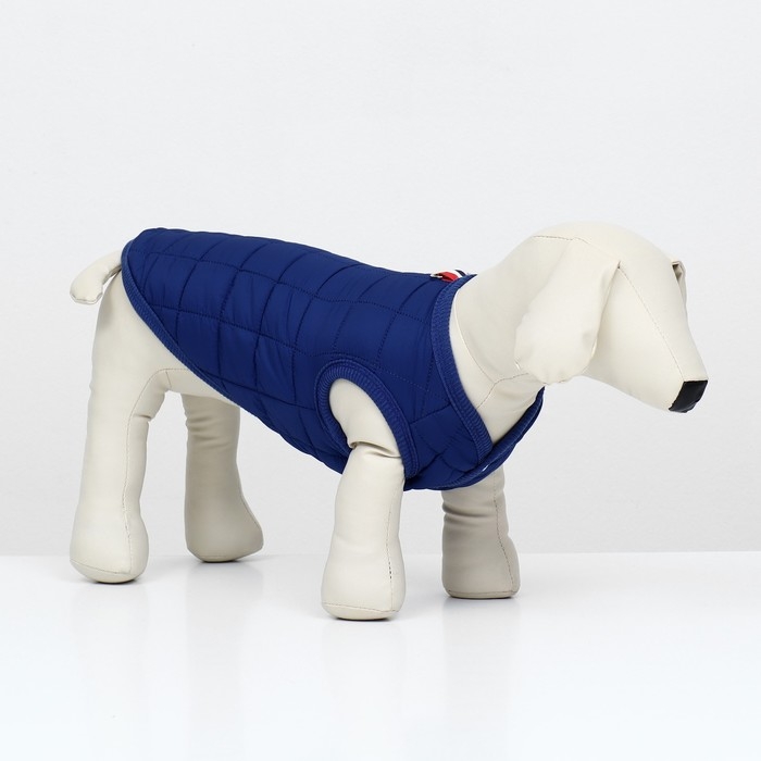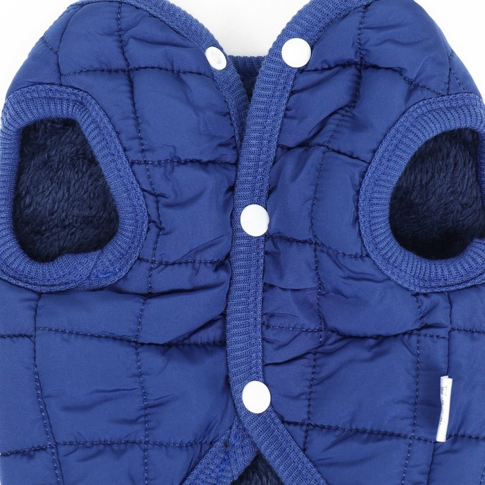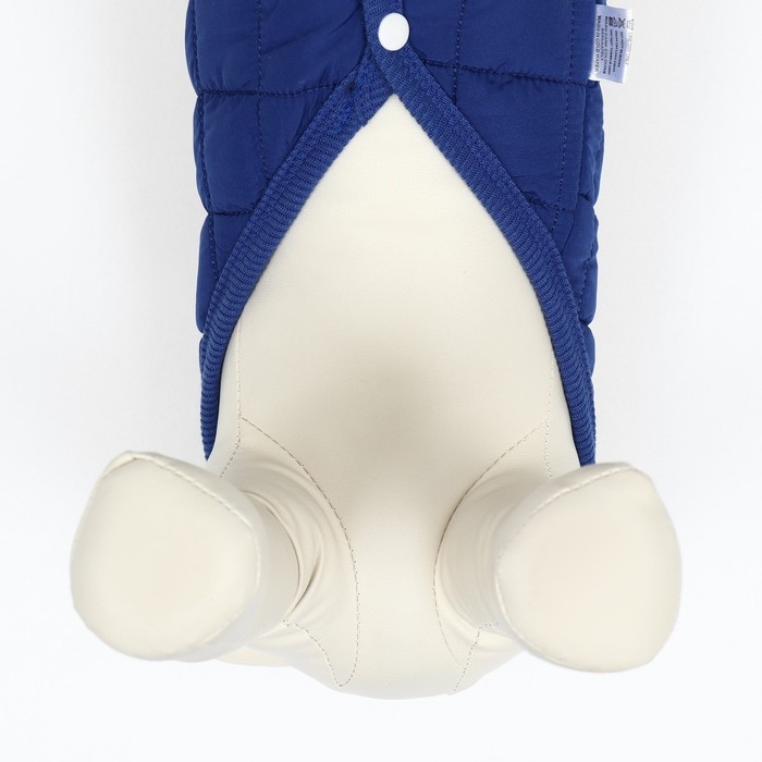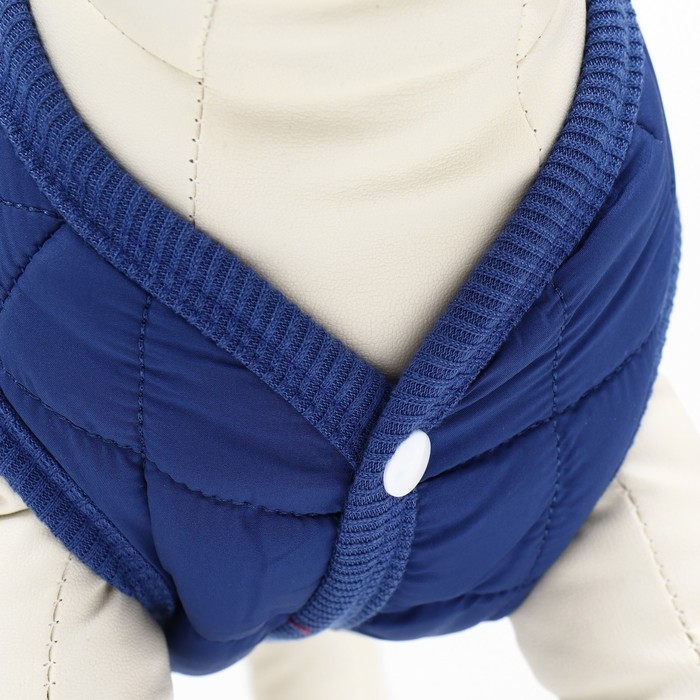 Тёплая, стёганая куртка подойдёт вашему питомцу в холодную погоду!Куртка с открытым животом пойдет, как для мальчиков, так и для девочек. Не сковывает движений, надежно защищает от грязи, дождя и ветра.Представлена в ярко синей расцветке. Куртка застегивается кнопками на животе, что позволяет легко надевать и снимать. Внутри имеется тёплый подклад.На спине куртки имеется кольцо для поводка, что облегчит подготовку к прогулкам.Позаботьтесь о своем любимце - это куртка обеспечит вашего любимца комфортом и теплом в плохую погоду.