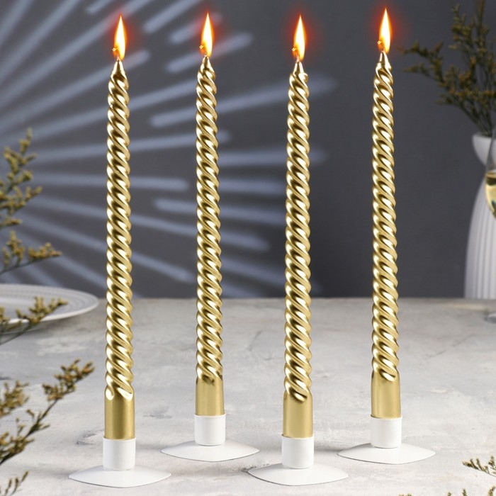 Набор Свечей витых, 2,2х 30 см, 4 штук, золотой металлик