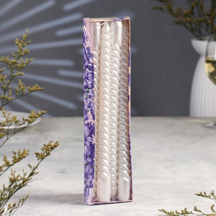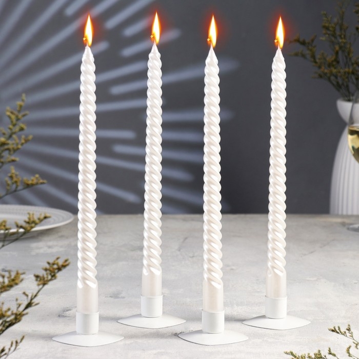 Набор Свечей витых, 2,2х 30 см, 4 штук, перламутровый металлик