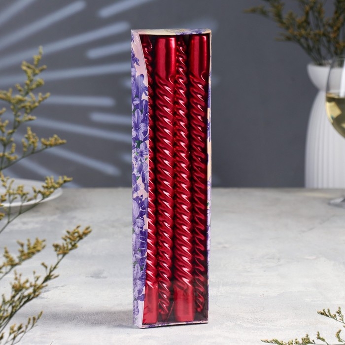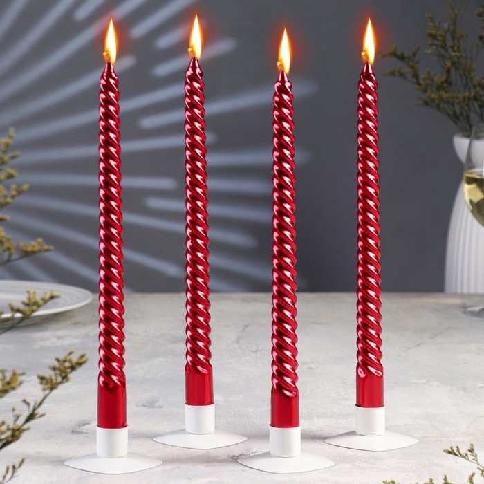 Набор Свечей витых, 2,2х 30 см, 4 штук, рубиновый металлик