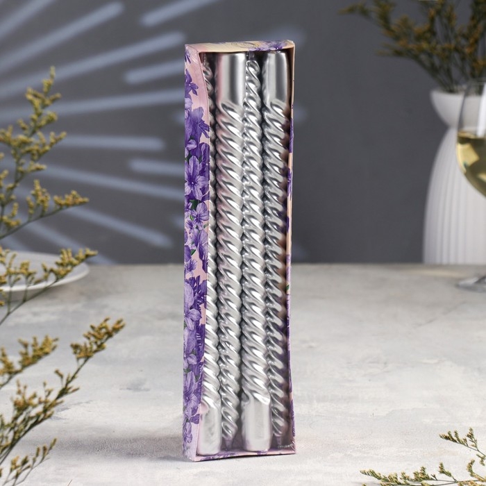 Набор Свечей витых, 2,2х 30 см, 4 штук, серебряный металлик