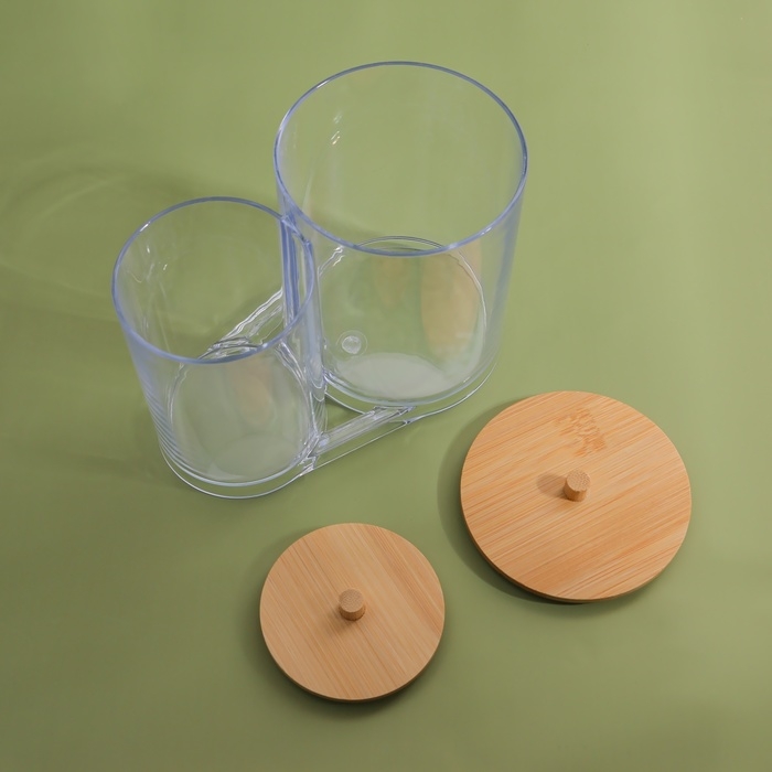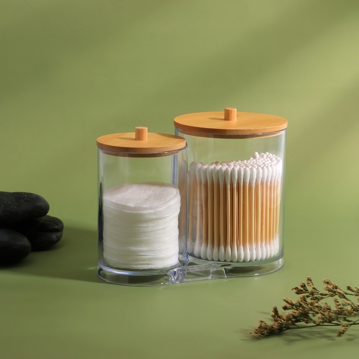 Органайзер для ватных палочек и дисков «BAMBOO», с крышкой, 12 × 8,5 × 11 см, в картонной коробке, цвет прозрачный/коричневый