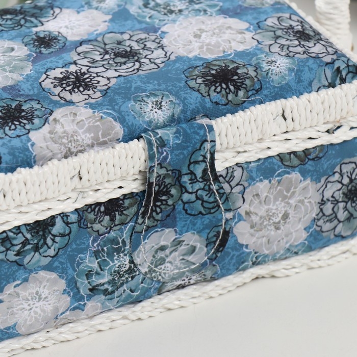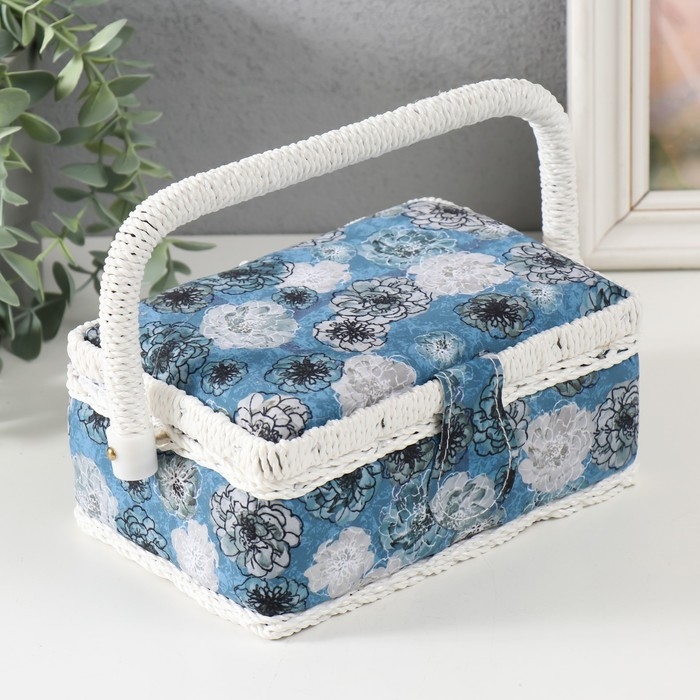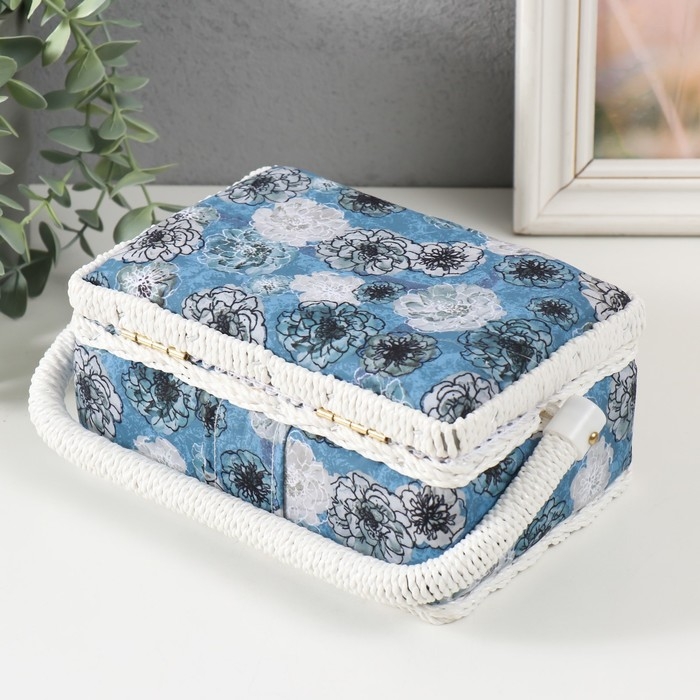 Шкатулка для рукоделия "Чёрно-белые цветы на голубом" 18х12х9,5 см