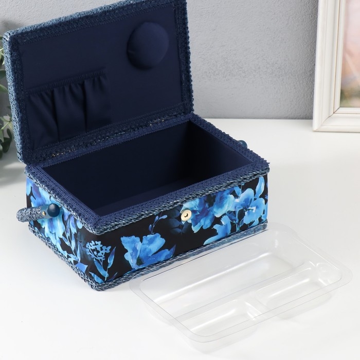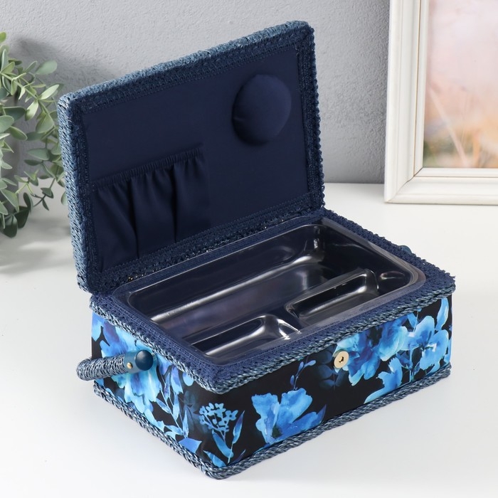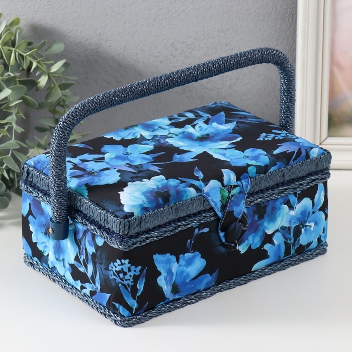 Шкатулка для рукоделия "Голубые цветы на синем" 24х16х11 см