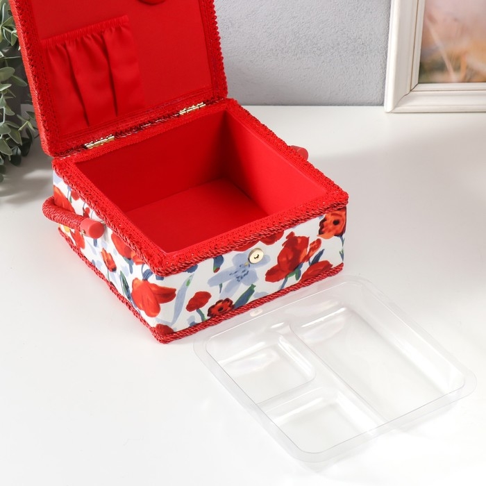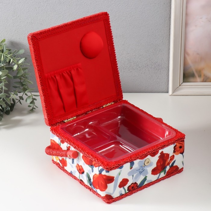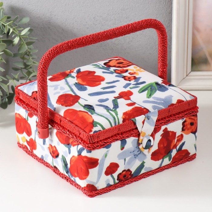 Шкатулка для рукоделия "Летние цветы на белом" 20х20х11 см