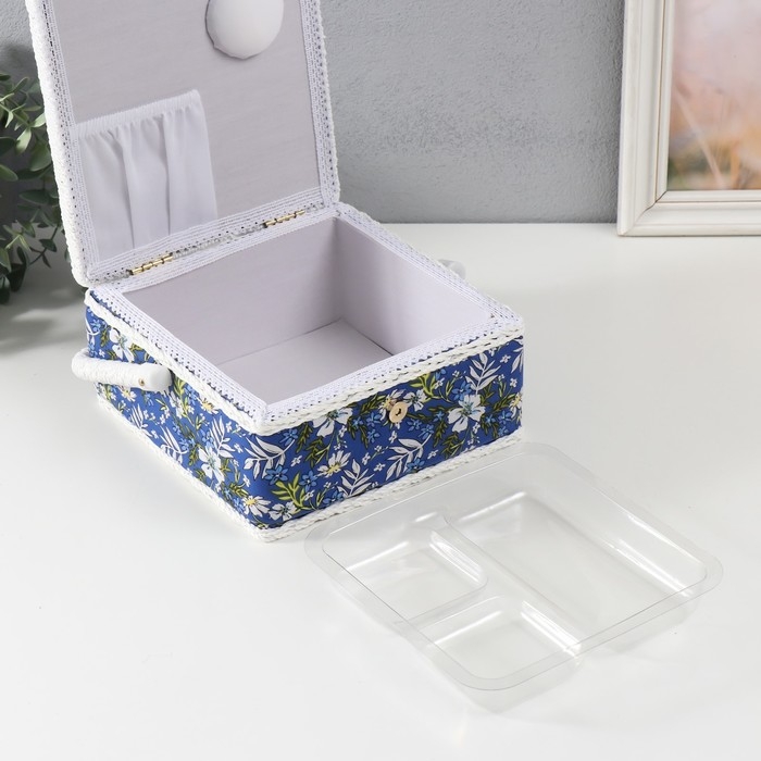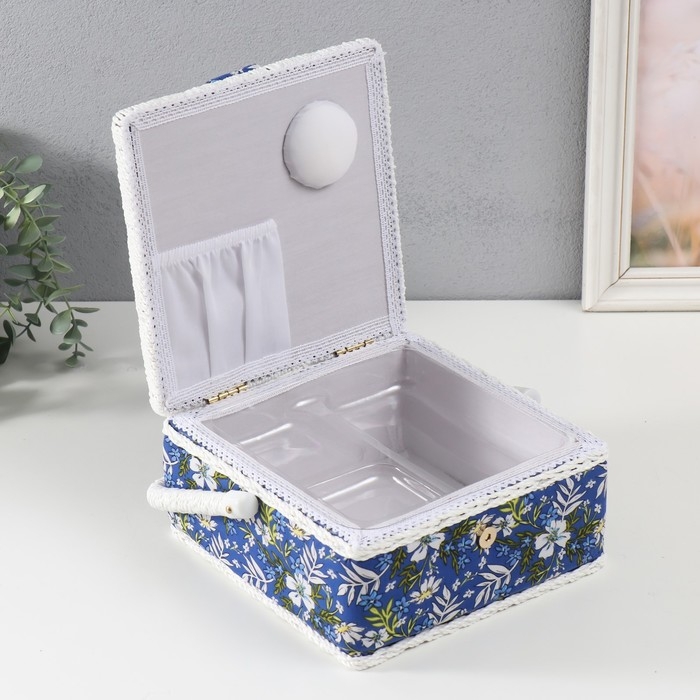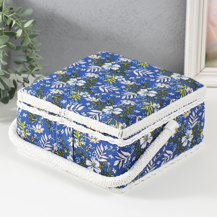 Шкатулка для рукоделия "Полевые цветы на синем" 20х20х11 см