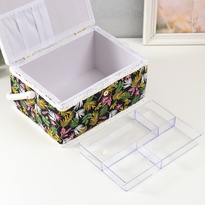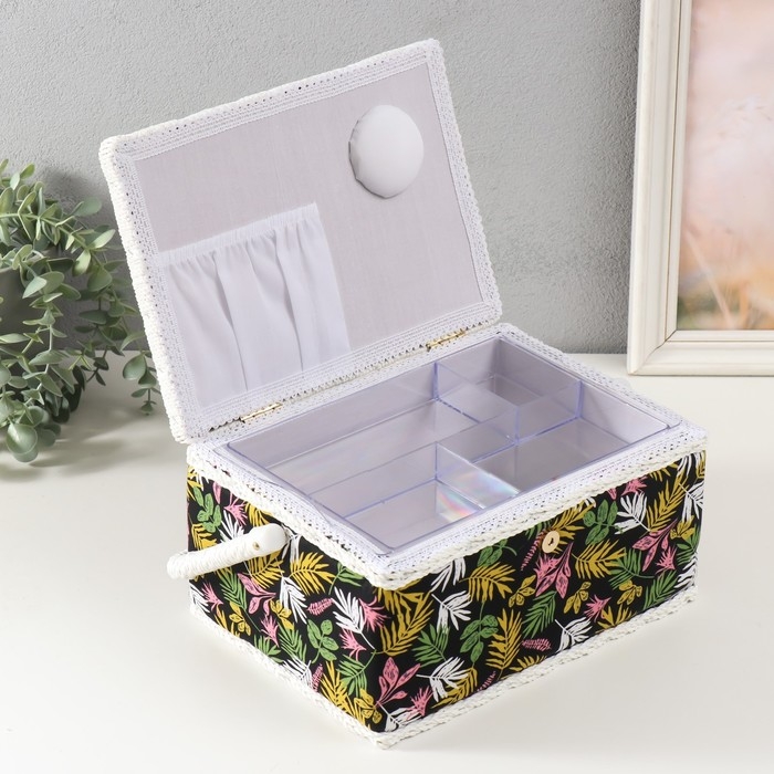 Шкатулка для рукоделия "Лесные веточки на чёрном" 19х26х14,5 см