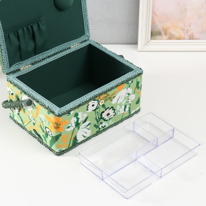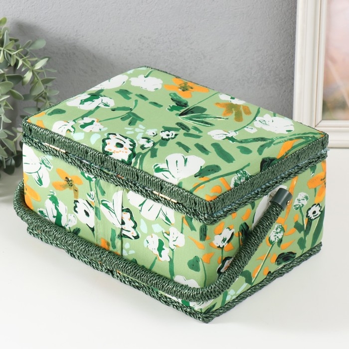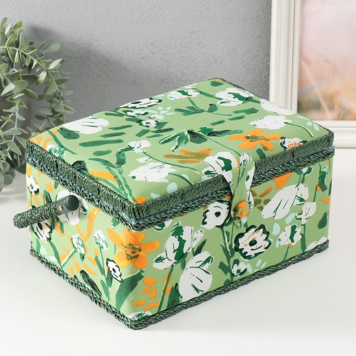 Шкатулка для рукоделия "Летние цветы на зелёном" 19х26х14,5 см