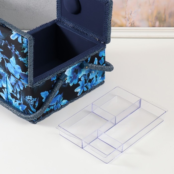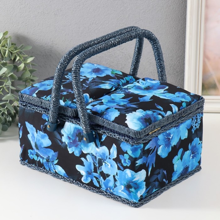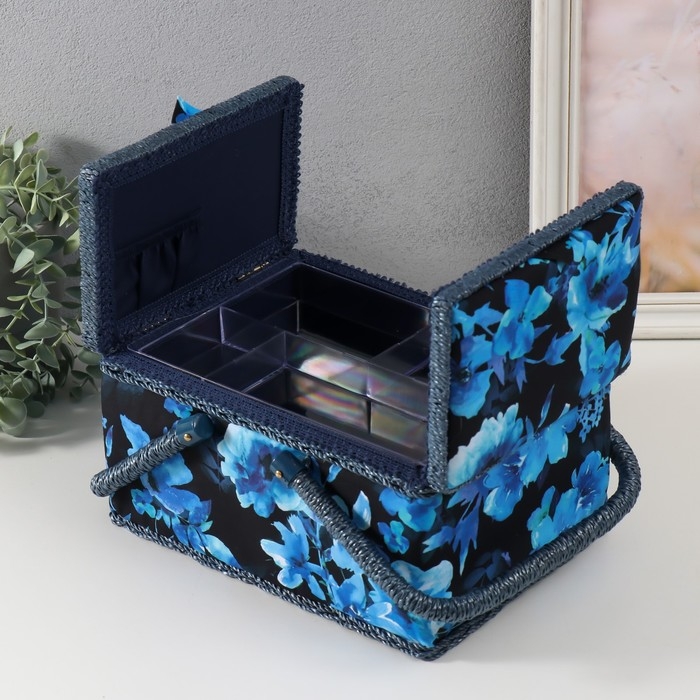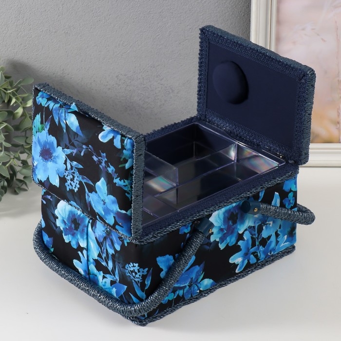 Шкатулка для рукоделия "Голубые цветы на синем" 19х26х14,5 см