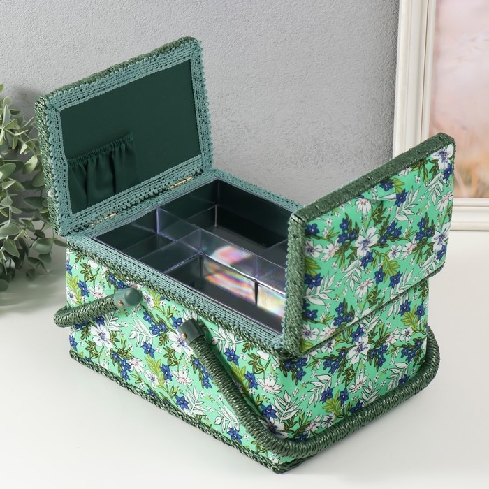 Шкатулка для рукоделия "Полевые цветы на зелёном" 19х26х14,5 см