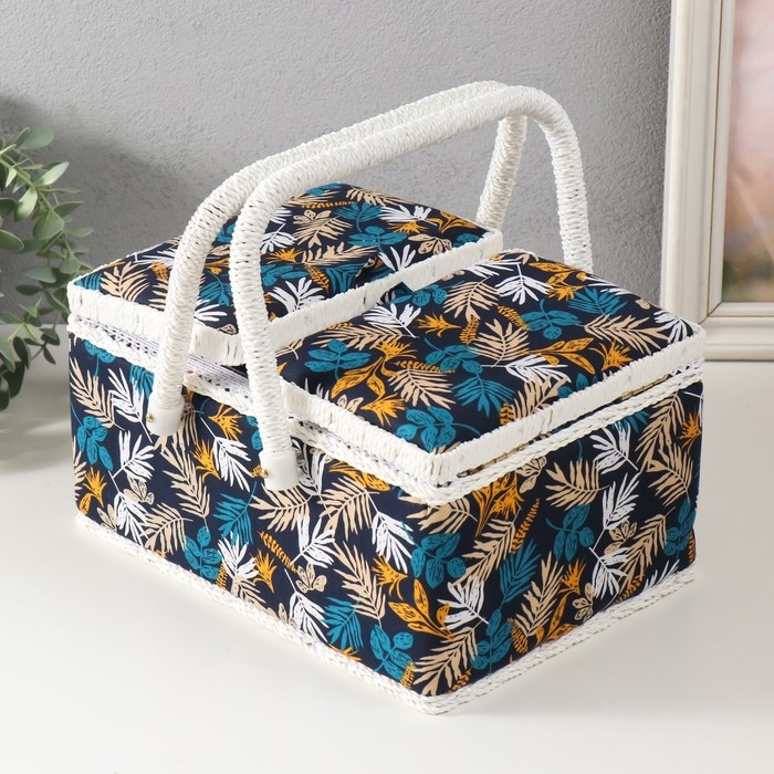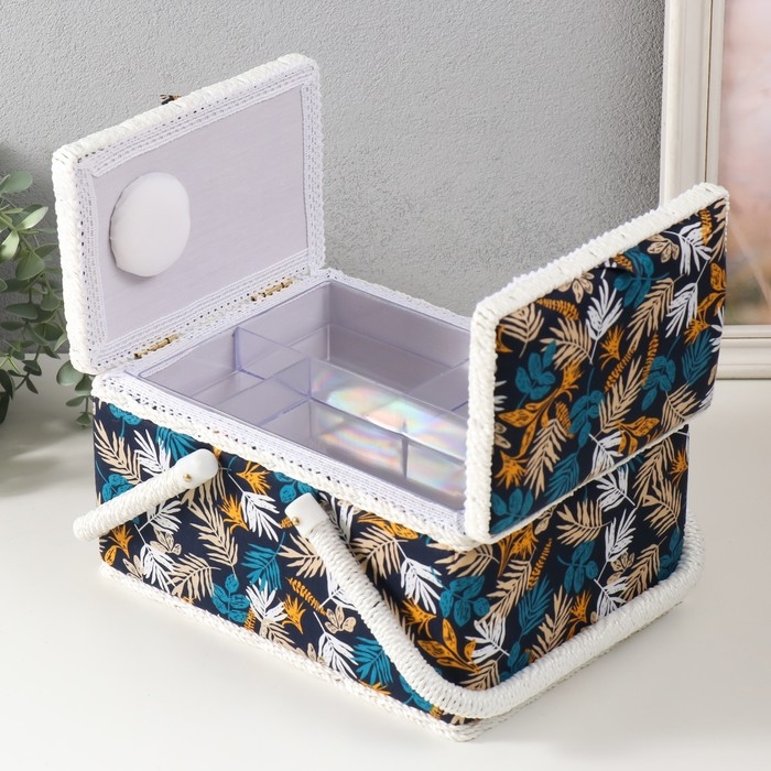 Шкатулка для рукоделия "Лесные веточки на синем" 19х26х14,5 см