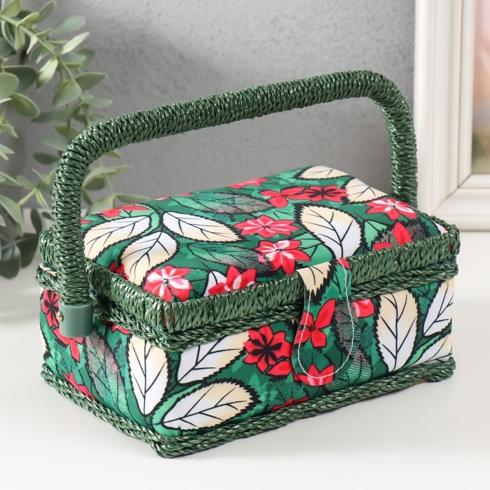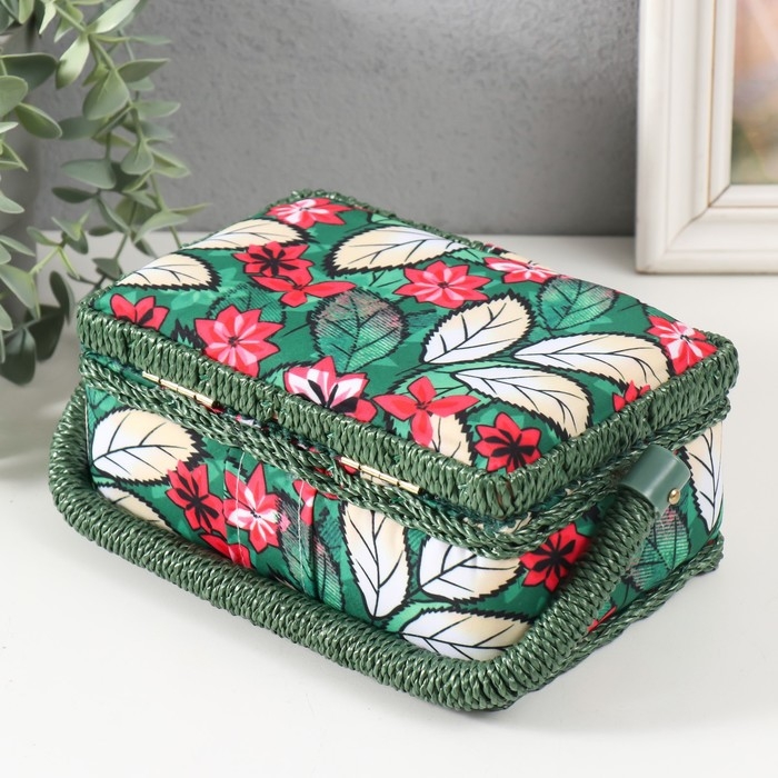 Шкатулка для рукоделия "Пуансеттия на зелёном" 18х12х9,5 см