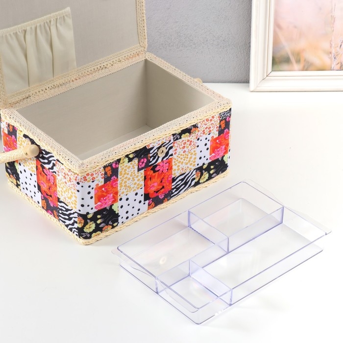 Шкатулка для рукоделия "Пэчворк. Цветы, горох и зебра" 19х26х14,5 см
