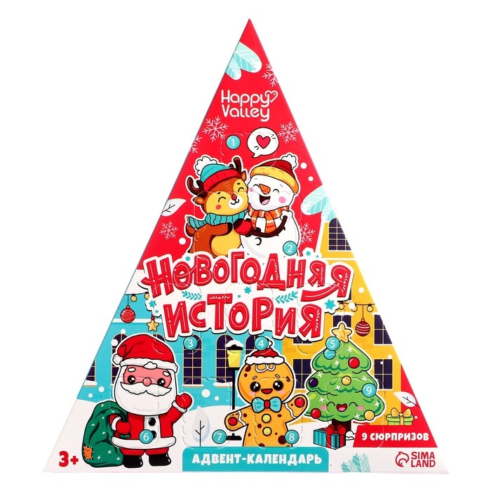 Адвент-календарь «Новогодняя история» — это замечательный способ создать атмосферу праздника и подарить детям ожидание чуда. Девять окошек с маленькими сюрпризами готовы радовать и удивлять каждый день в преддверии Нового года.Размер адвент-календаря 28 × 25 см