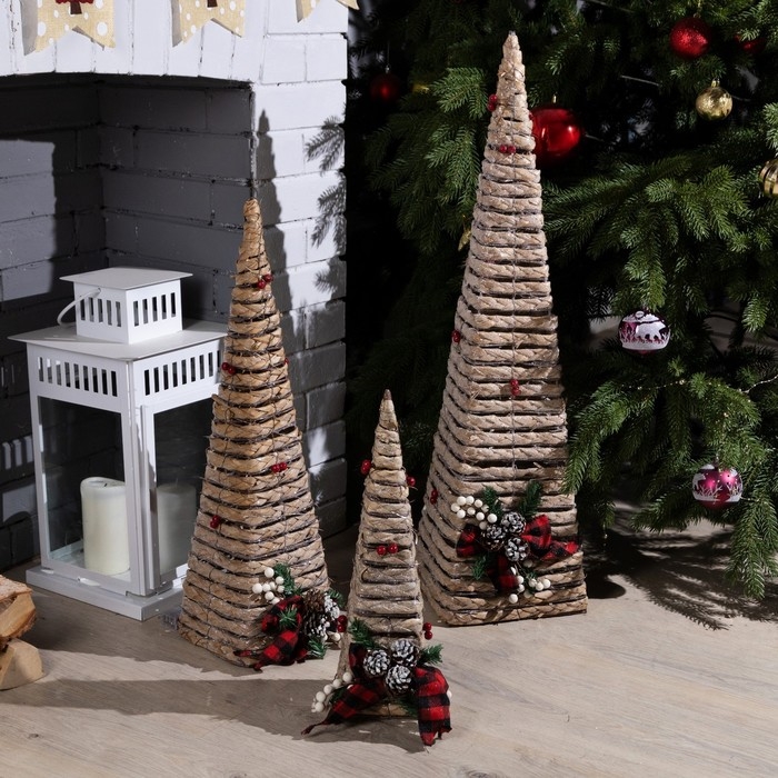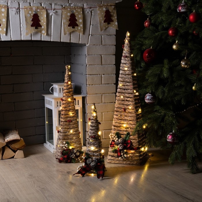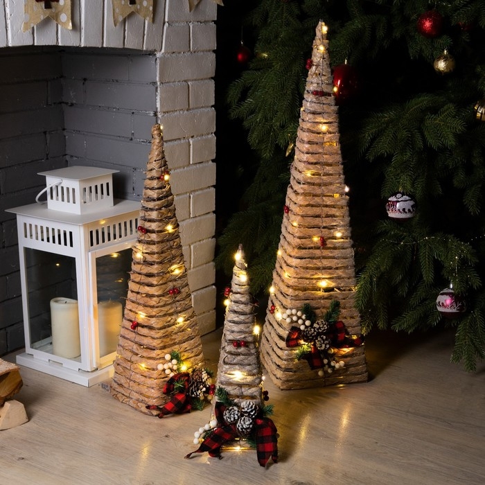 Светодиодная фигура «Эко-конусы» 40, 60, 80 см, текстиль, металл, батарейки ААх2 (не в комплекте), свечение тёплое белое