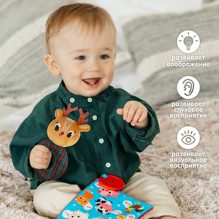 Игрушка - погремушка новогодняя на колечке «Оленёнок», подарочная упаковка, Крошка Я