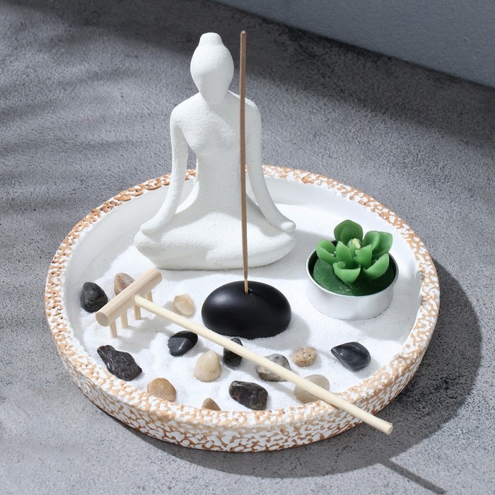 Сад камней с подставкой для благовоний "Гармония", 17х17х13см, бетон
