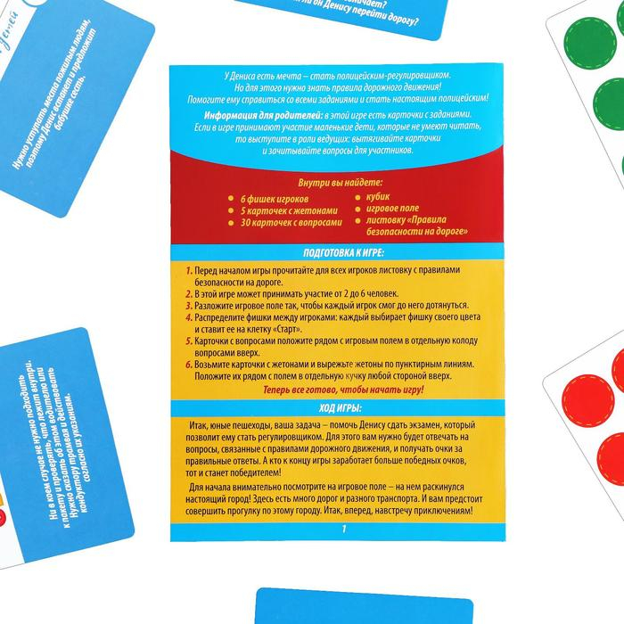 Настольная игра «ОБЖ для детей: ПДД для юных пешеходов», 60 карт, 6 фишек, игровое поле, кубик, 6+