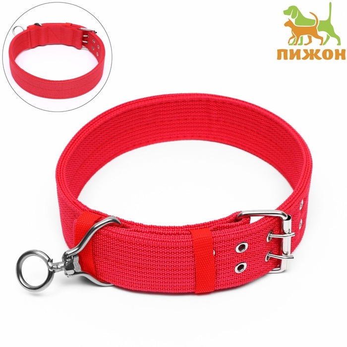 Ошейник "Комфорт" комбинированный (полиэстер, искусственная кожа), 58 х 3 см, ОШ 45-52 см, красный 6