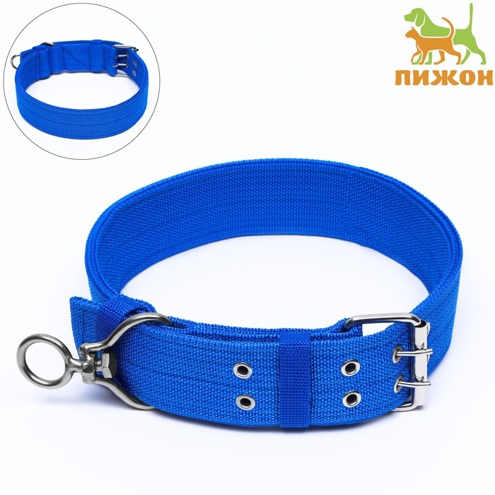 Ошейник четырехслойный с вертлюгом, 80 х 4,9 см, ОШ 64-74 см, полиэстер, синий