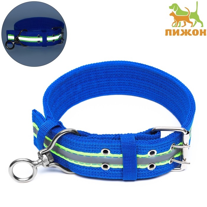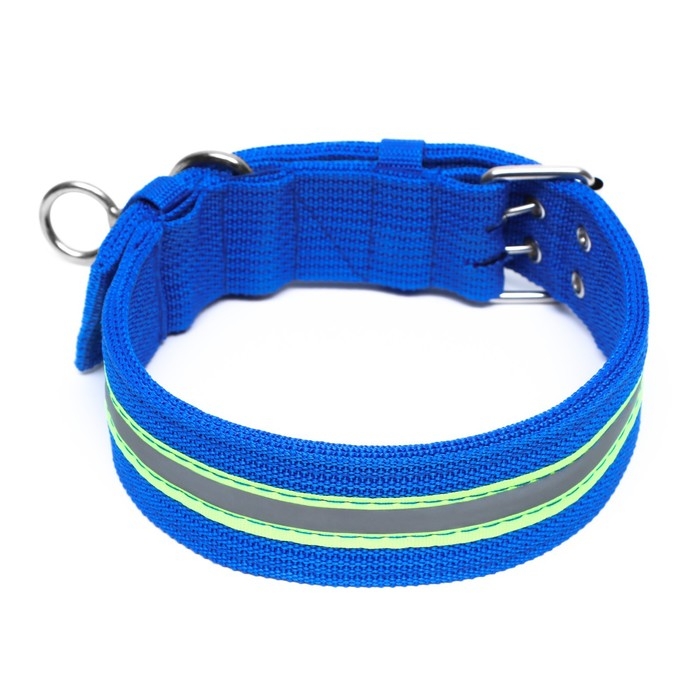 Ошейник четырехслойный светоотражающий с вертлюгом, 71 х 5 см, ОШ 55-65 см, синий