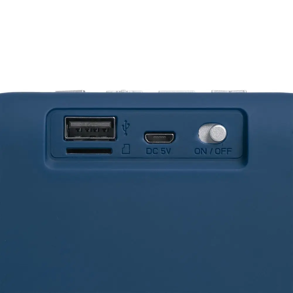Колонка Borsetta умеет проигрывать музыку через Bluetooth, с USB-флешки, карты microSD и принимать радиоволны в FM-диапазоне. Благодаря дополнительному басовому излучателю колонка звучит объемно и сочно, а современный дизайн корпуса с покрытием софт-тач и фактурной акустической тканью не позволит ей остаться незамеченной.