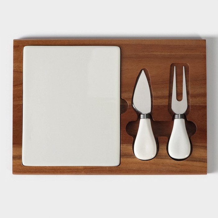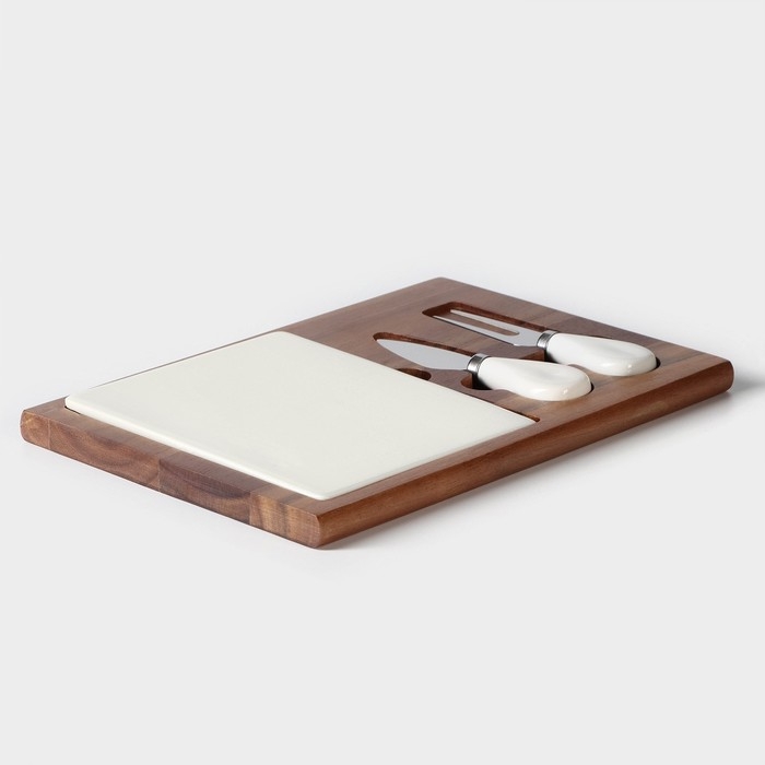 Набор для подачи сыра «Мрамор», 2 ножа, акация