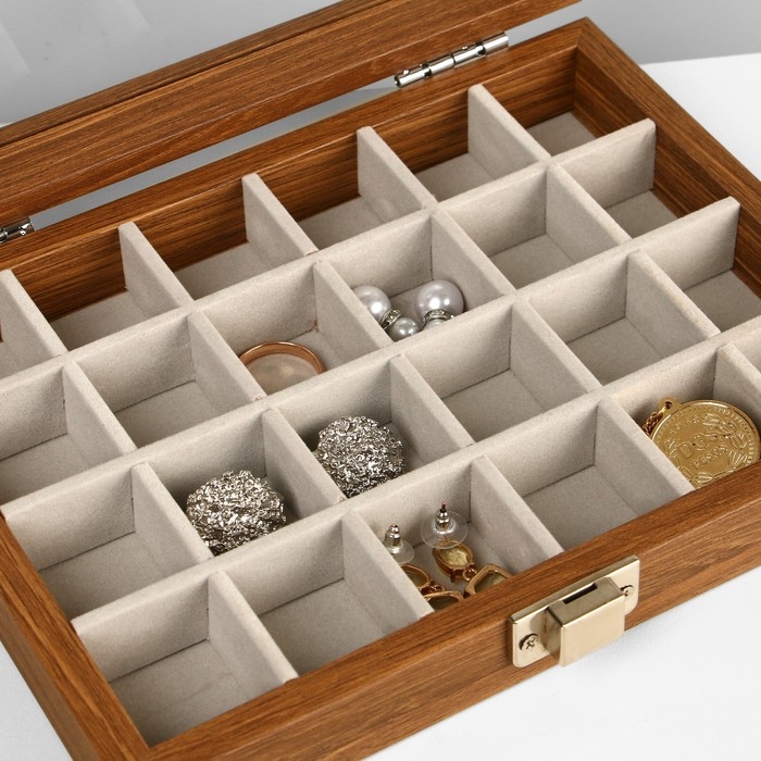 Если вы занимаетесь реализацией разнообразных украшений и аксессуаров, то вам нужно наглядно продемонстрировать свой товар, представив его в лучшем виде. Подставка для украшений «Шкатулка дерево» 24 ячейки, 16×21×5 см, цвет серый в дереве как нельзя лучше справится с этой задачей! У каждого украшения появится своё место, откуда его можно будет хорошо рассмотреть.