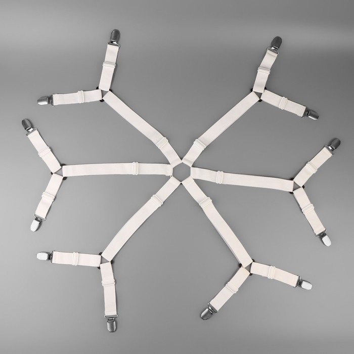 Зажимы на резинке, с регуляторами, на 4 угла и 2 стороны, 2 × 240 см, цвет белый