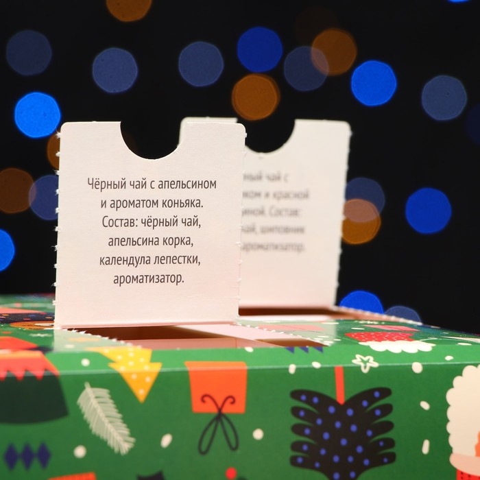 Чайный адвент-календарь "Счастливого рождества" - это идеальный подарок на новогодние праздники. С помощью такого необычного календаря можно радовать себя 12 разными вкусами чая. Разместите сувенир на видном месте, например, на кухне или в гостиной, и каждый день вскрывайте по одной ячейке и наслаждайтесь потрясающим вкусом чая.