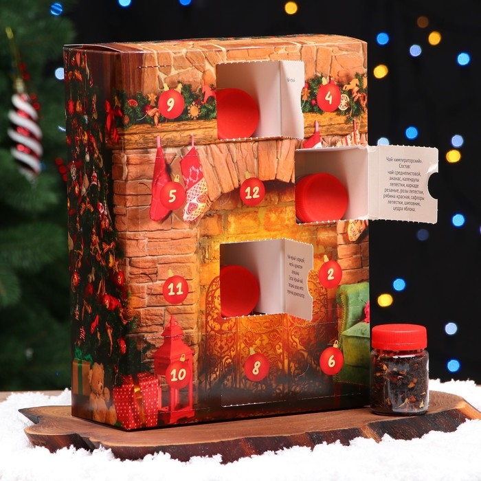 "Чайный адвент-календарь ""Новогодний очаг"" - это идеальный подарок на новогодние праздники. С помощью такого необычного календаря можно радовать себя 12 разными вкусами чая. Разместите сувенир на видном месте, например, на кухне или в гостиной, и каждый день вскрывайте по одной ячейке и наслаждайтесь потрясающим вкусом чая.