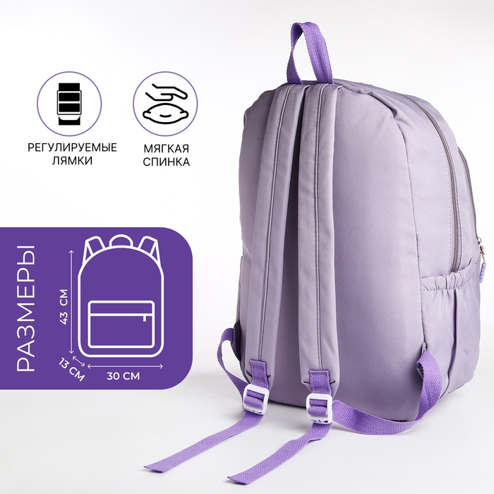 Рюкзак школьный из текстиля 2 отдела на молнии, 3 кармана, цвет сиреневый