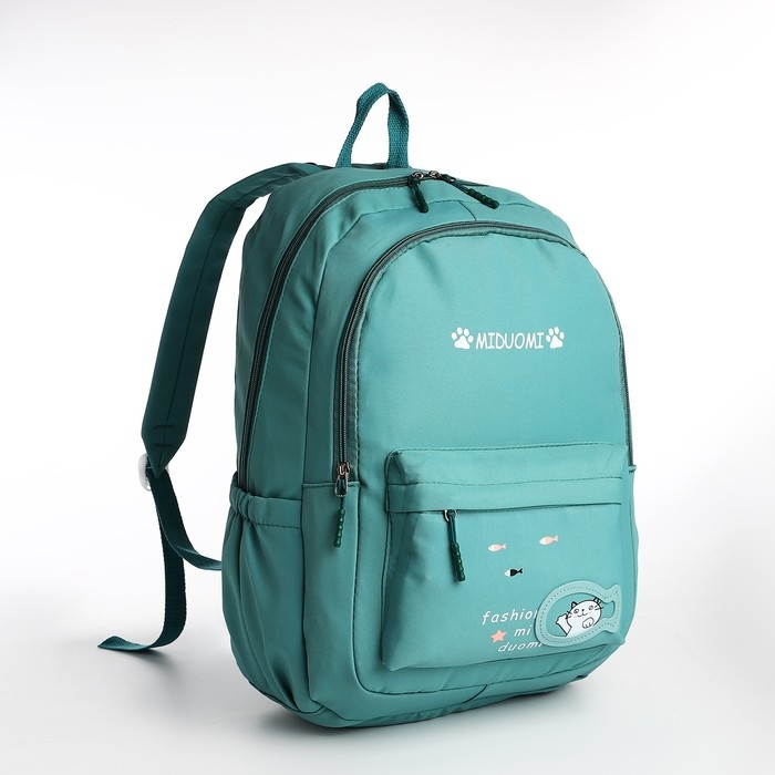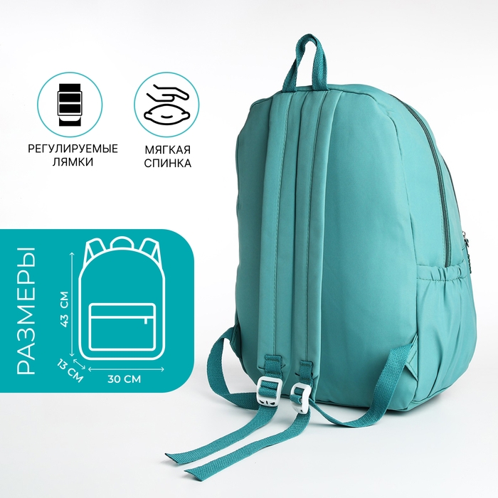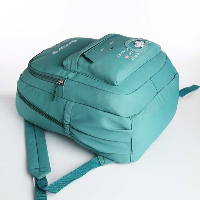 Рюкзак школьный из текстиля 2 отдела на молнии, 3 кармана, цвет зелёный