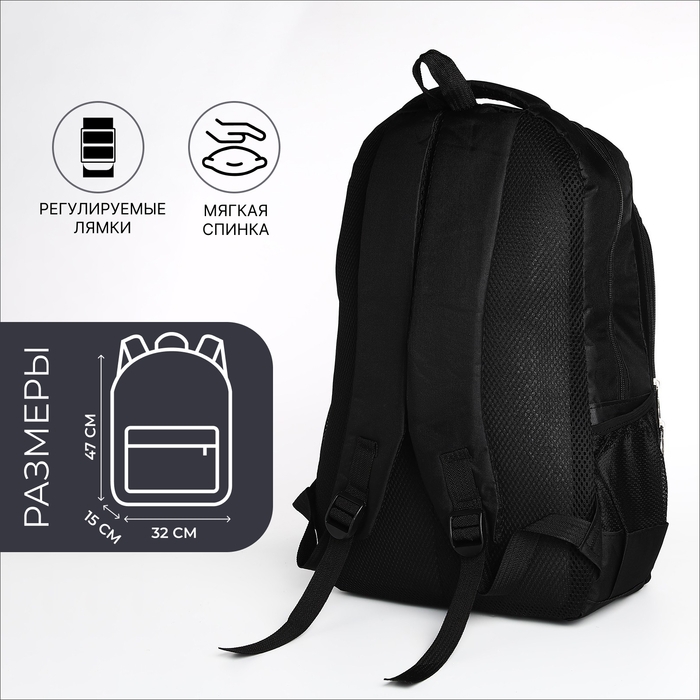 Рюкзак школьный из текстиля, 2 отдела, 4 кармана, цвет чёрный