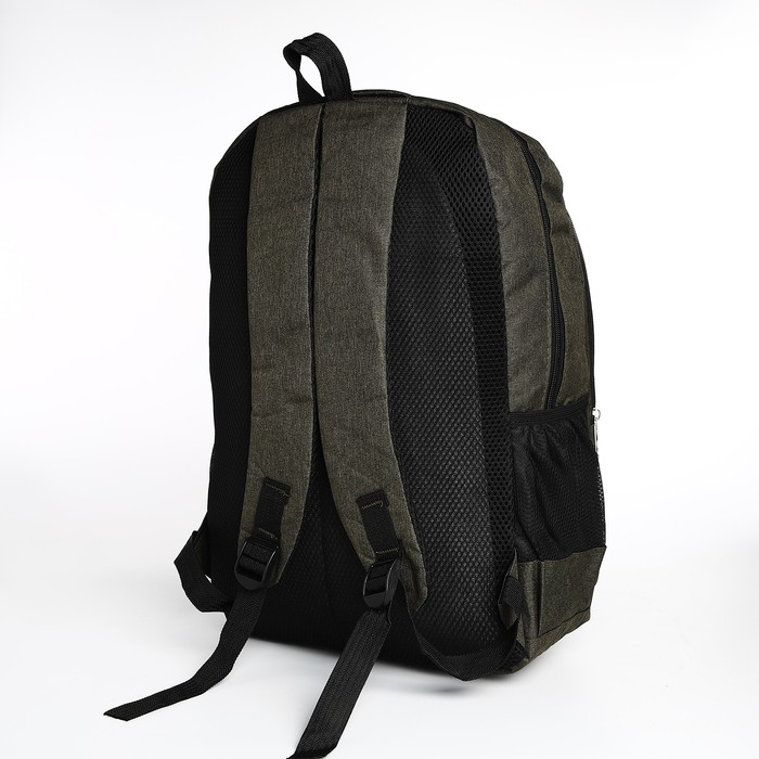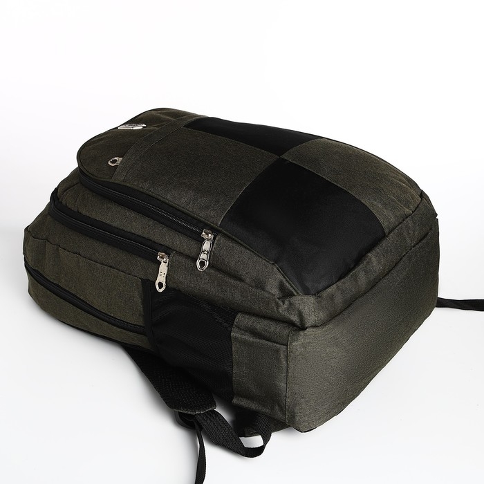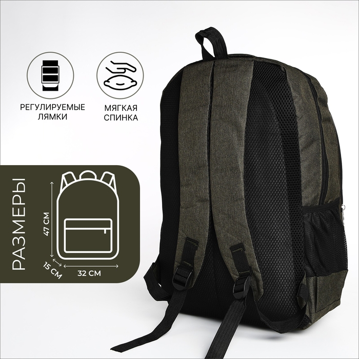 Рюкзак школьный из текстиля, 2 отдела, 4 кармана, цвет зелёный