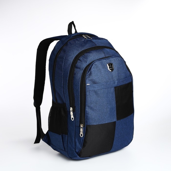 Рюкзак школьный из текстиля, 2 отдела, 4 кармана, цвет синий
