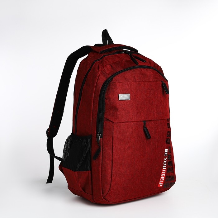 Рюкзак школьный на молнии, 4 кармана, цвет бордовый