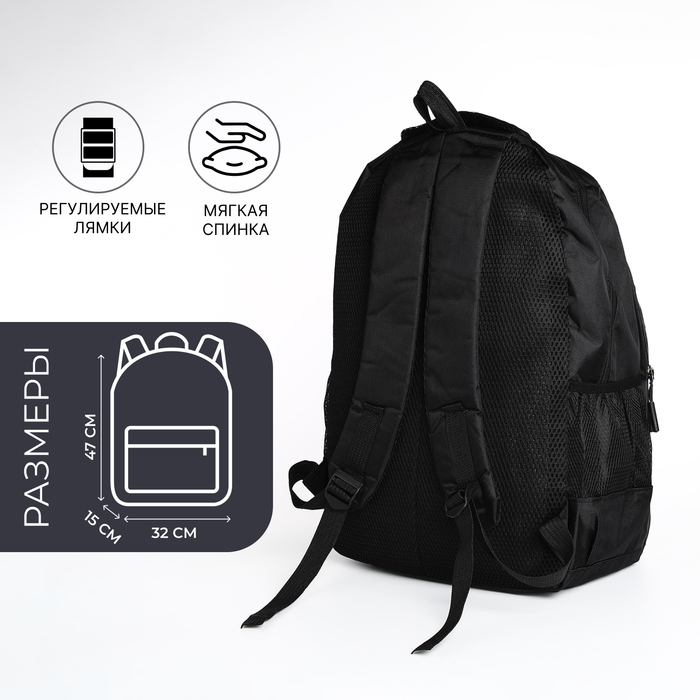 Рюкзак мужской на молнии, 4 наружных кармана, цвет чёрный