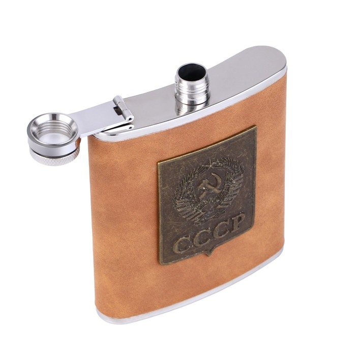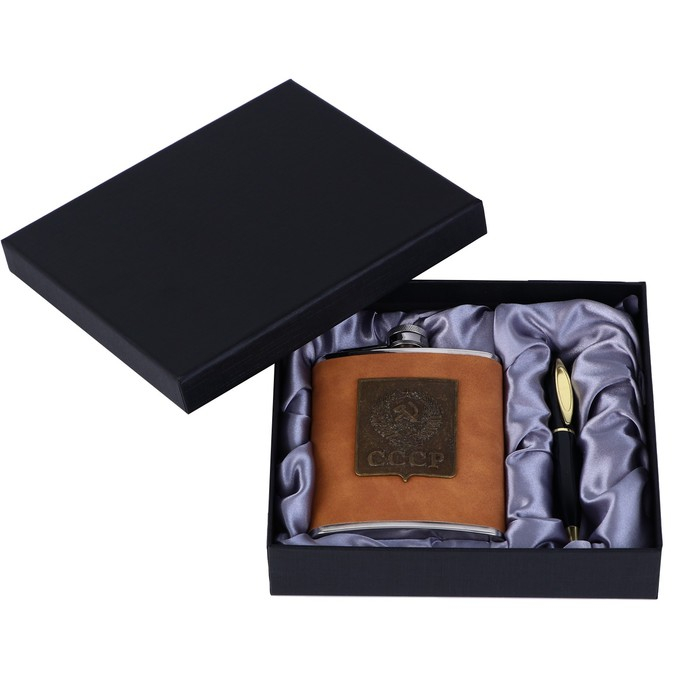 Подарочный набор 2 в 1 "СССР": фляжка 210 мл, ручка, коричневый, 14 х 18 см