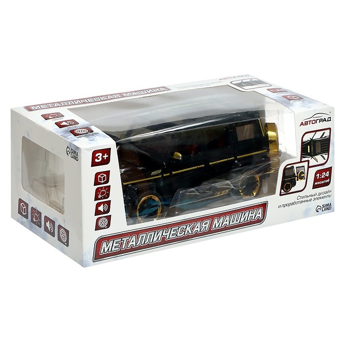 Машина металлическая, инерционная, 1:24, открываются двери, капот, багажник, цвет чёрный