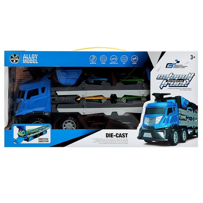 Парковка 2 в 1 Truck, 6 машинок, трансформируется в автотрек, звук, цвет синий