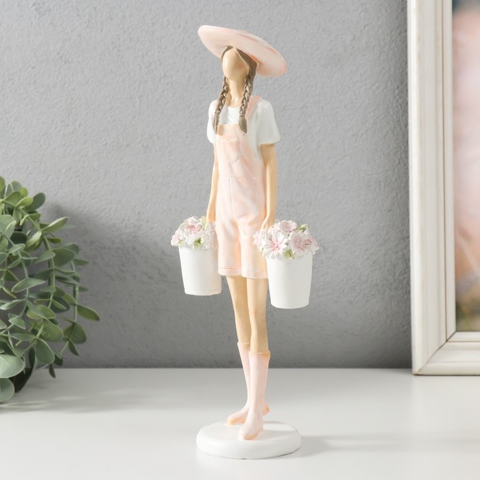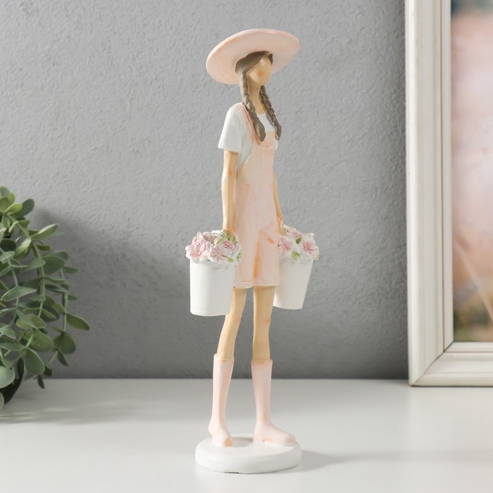Сувенир полистоун "Девушка с ведёрками цветов" 10,5х6,5х26,5 см