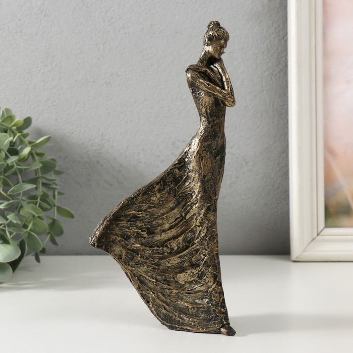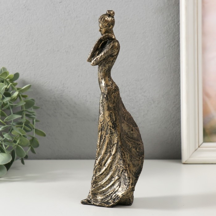 Сувенир полистоун "Девушка - объятия" под бронзу 11х7х22 см