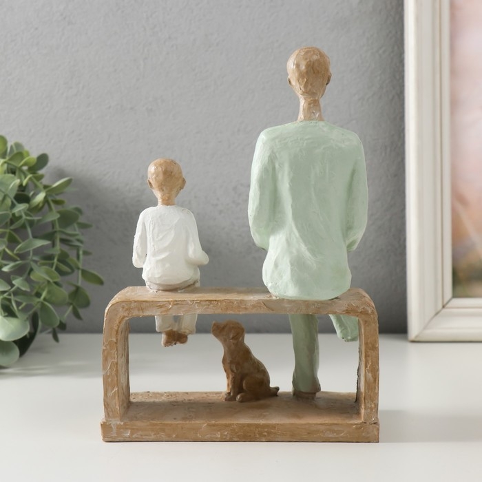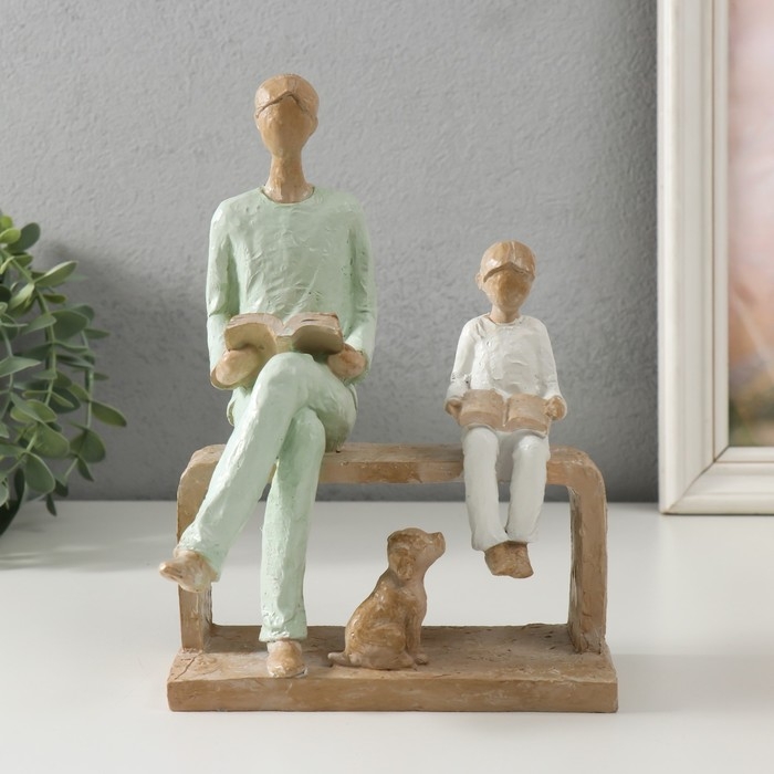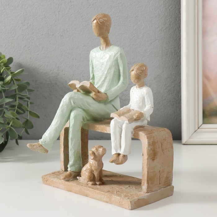 Сувенир полистоун "Отец и сын. Чтение" бело-зелёный 15,5х12х21 см