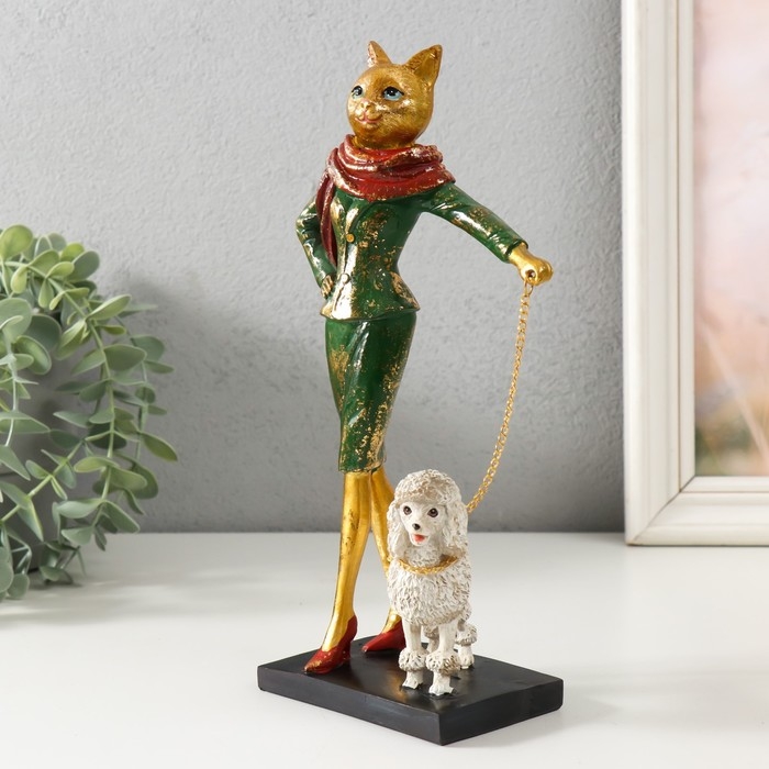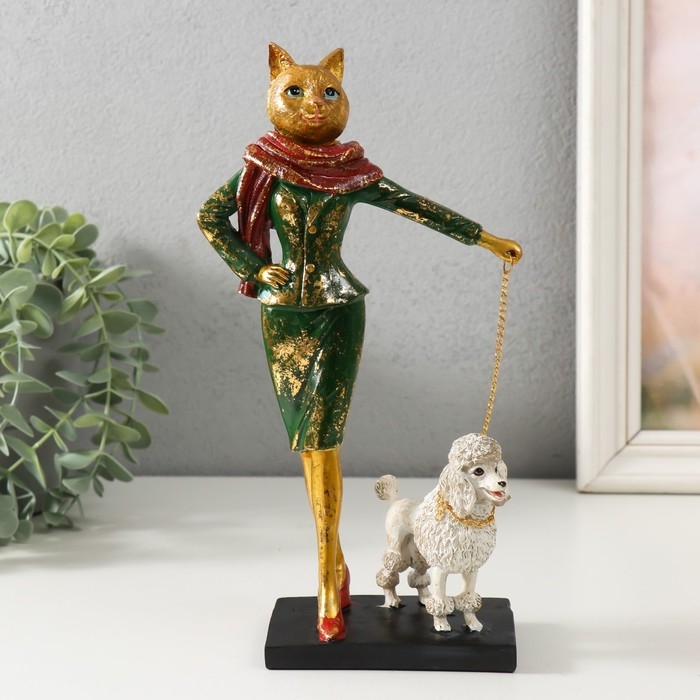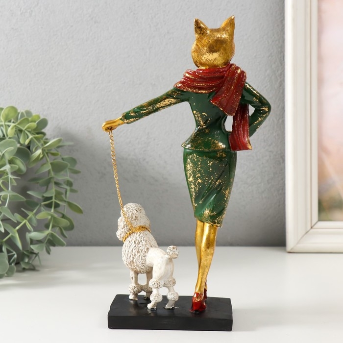 Сувенир полистоун "Мадмуазель Кошка выгуливает пуделя" 13,5х7,5х24,5 см