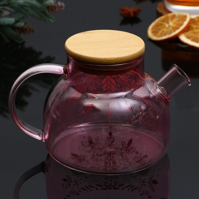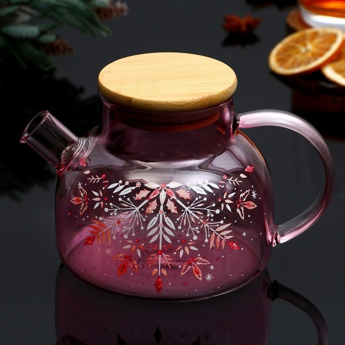 Новый год. Чайник заварочный стеклянный с бамбуковой крышкой «Розовая сказка», 600 мл