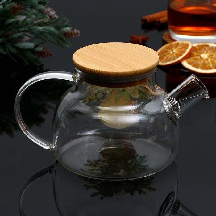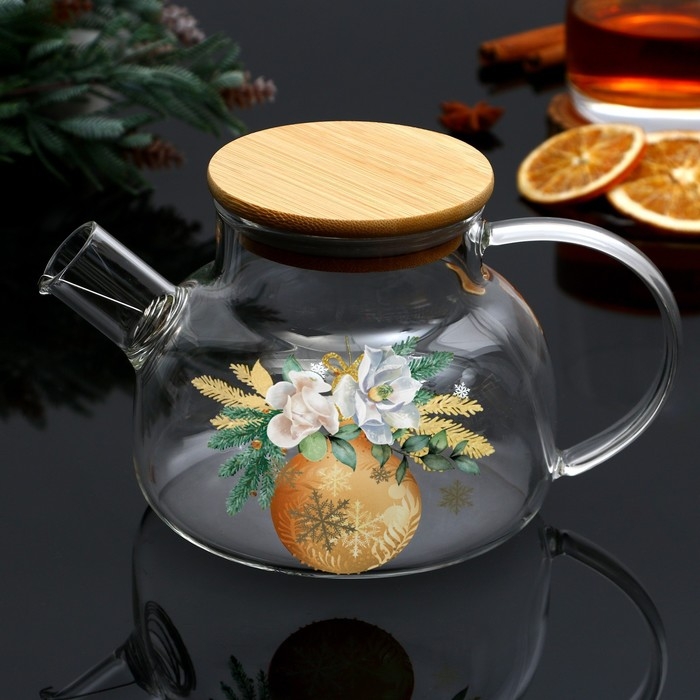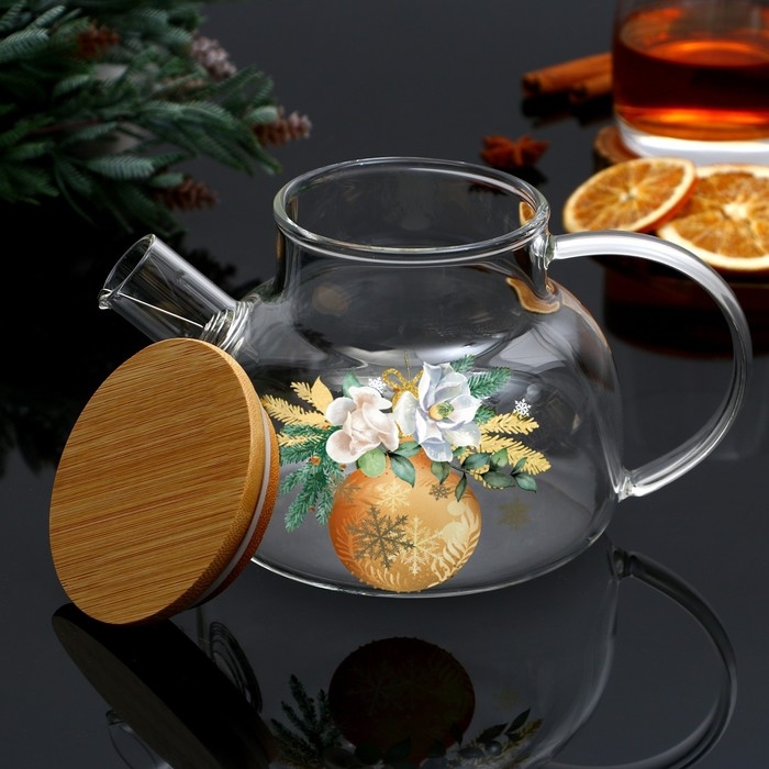 Новый год. Чайник заварочный стеклянный с бамбуковой крышкой «Зимние истории», 800 мл