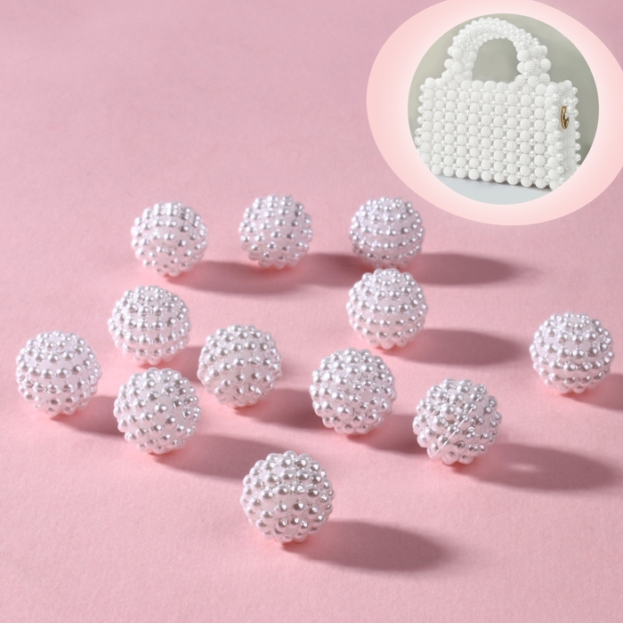 Бусины пришивные «Ежевика», d = 12 мм, 500 г, цвет белый