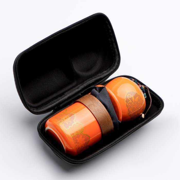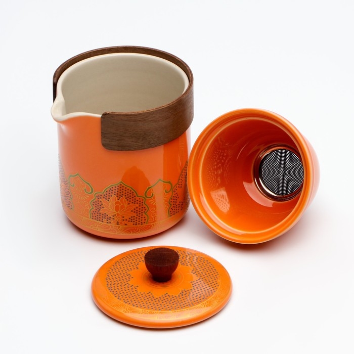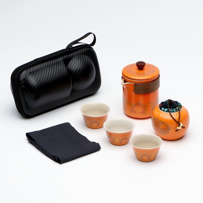Набор для чайной церемонии 5 предметов, на 3 персоны, чашка 46 мл, чайник 250 мл, оранжевый